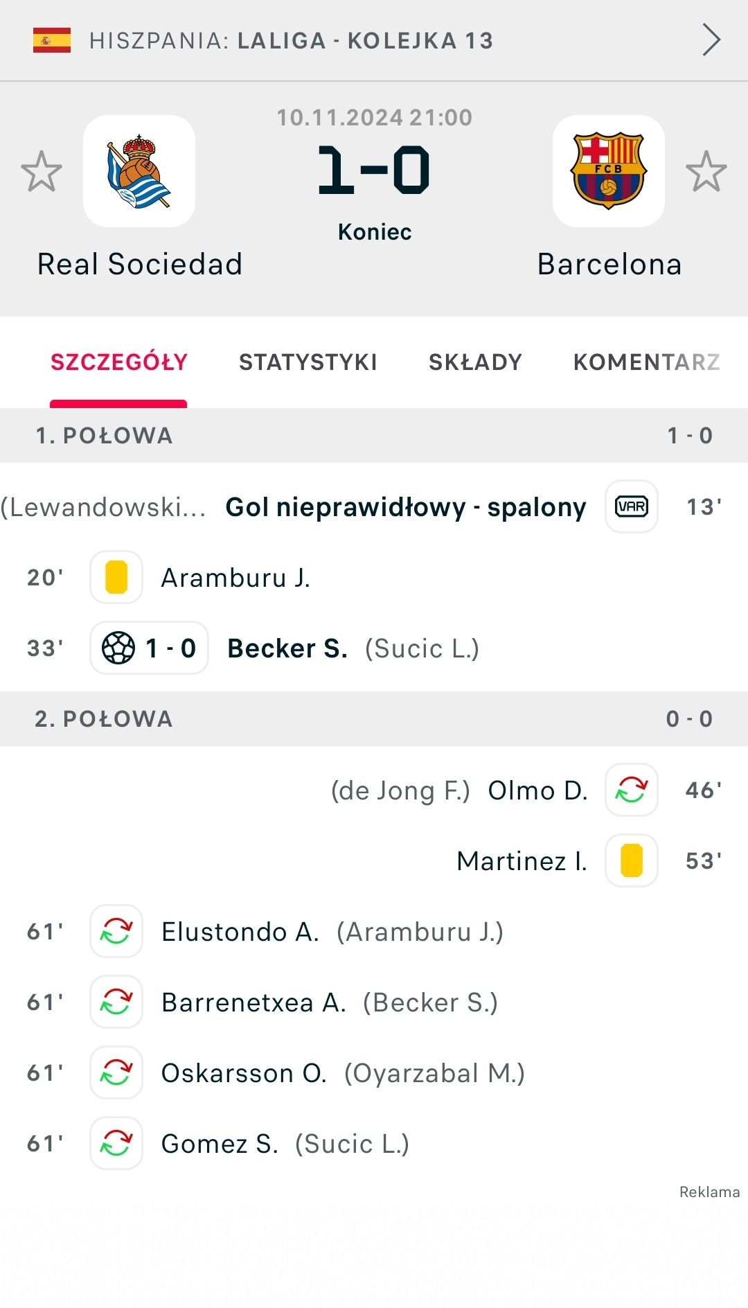 -Brak kompletnego zaangażowania drużyny w mecz