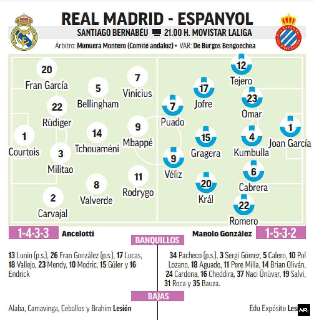 🚨⚠️ Vinicius, Rüdiger oraz Ferland Mendy będą odpoczywać w dzisiejszym meczu. W ich miejsce mają zagrać Modrić, Güler i Fran Garcia.
